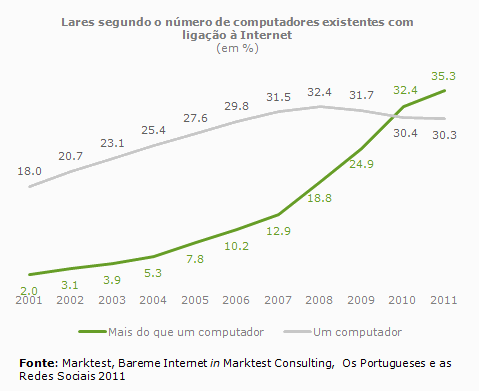 Desde 2010 que o número de lares com mais de um computador com acesso à net é superior ao daqueles que só possuem um destes equipamentos.