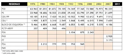 Eleições regionais: votos dos partidos