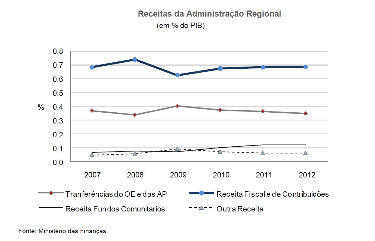 No âmbito do princípio da solidariedade, as regiões autónomas deverão ter um ajustamento que se deverá traduzir num saldo global positivo, na ordem dos 242 milhões de euros (0,1% do PIB).Em 2012, as transferências do Orçamento do Estado, ao abrigo da Lei das Finanças Regionais, deverão totalizar 566 milhões de euros, menos 5,7% face a 2011, que mais que compensa o aumento previsto das transferências provenientes das outras Administrações Públicas, o que contribui para a quebra prevista de 1,4% na receita efetiva.