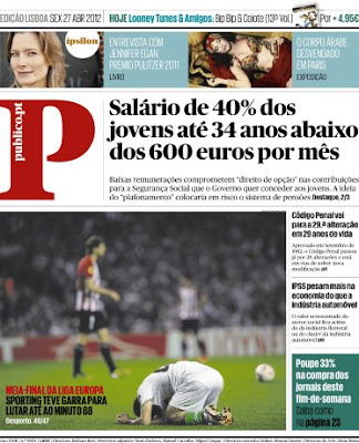 Segundo o DN de Lisboa, "a Grande Investigação DN vai desenrolar o emaranhado que é o chamado Caso BPN. A partir do próximo domingo, 29 de Abril, e até ao dia 4 de Maio, contamos todos os pormenores. O buraco financeiro do banco e quanto vai todo o processo custar aos portugueses, os pormenores dos vários processos que decorrem nos tribunais, os detalhes sobre as decisões de nacionalização e posterior venda, os protagonistas do caso - incluindo quem mais ganhou com isto tudo... São reportagens que não vai querer perder, a partir do próximo domingo e até sexta no DN. Uma Grande Investigação para ler na íntegra nas edições em papel e e-paper do DN". Esperemos que o DN de Lisboa conte tudo e nos diga os motivos da nacionalização acelerada, quanto é que já custou o BPN aos portugueses e quem eram os principais clientes e as instituições públicas que operavam com o banco. Se não for assim, não servirá para nadaquarta-feira, abril 25, 2012