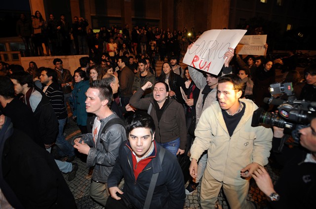 Protesto de estudantes na Faculdade de Direito de Lisboa (veja aqui o video da TVI)