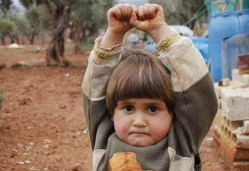de pessoas partilharam a imagem da menina síria com os braços levantados, em